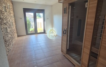 A 250 m²-es lakrésszel rendelkező két szintes családiház egy 1012 m²-es parkosított telken helyezkedik el.